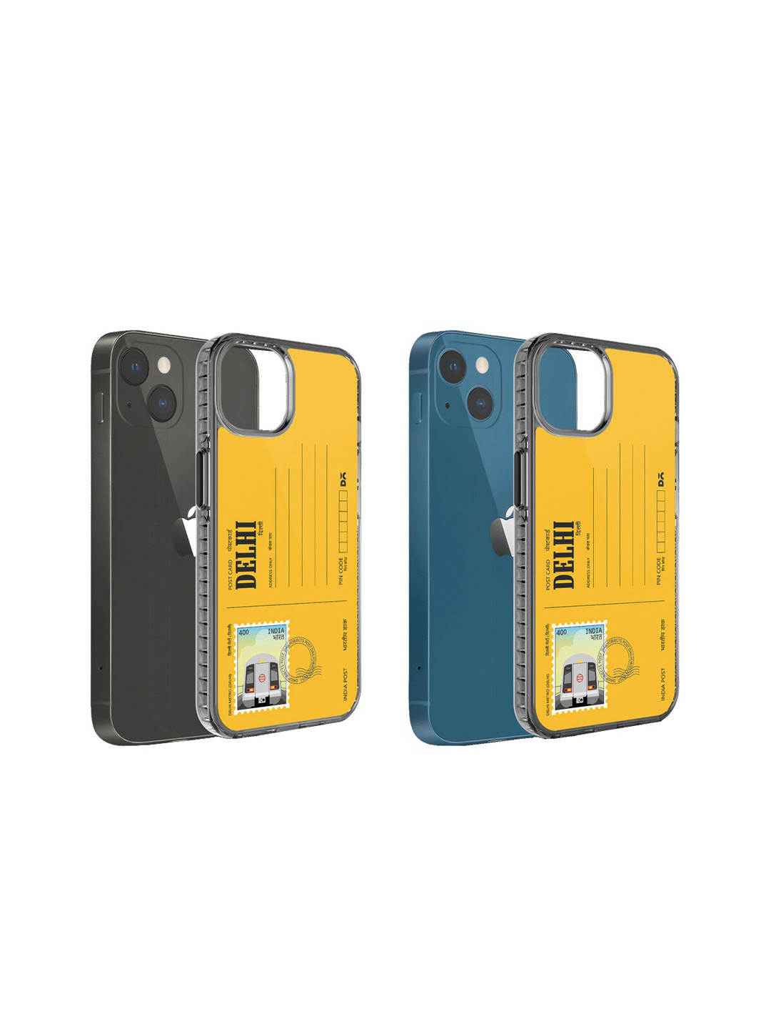 Set content: One mobile caseColour: Orange and blackPattern: Post Card PrintedModel: iPhone 13 MiniFeatures:Easy access, grip and super slimAir Cushion technologyHeavy Duty ProtectionGives up to 6.6ft drop protectionRaised bezels for lens protection360 Degree ProtectionStride 2.0 Phone CaseOffers supreme protectionThe raised bezels offer complete camera protection1 mm thickness at the edges cushions it from falling, making it safe from all sidesA phone case that gets along with all Qi-Certified wireless chargers