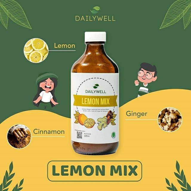 Lemon+ Dailywell terbuat dari campuran Lemon, Kayu manis, dan Jahe.