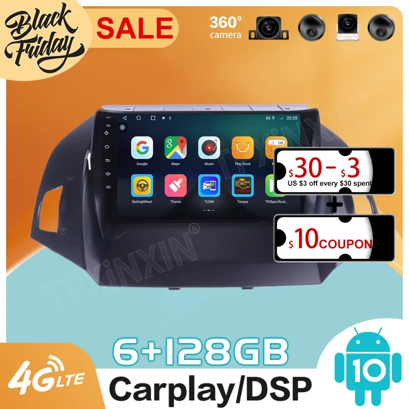 Android 10 128GB for Ford Kuga Escape 2012 - 2019 Car GPS Navigation Auto Radio Stereo Video Multimedia Player Carplay Head Unit