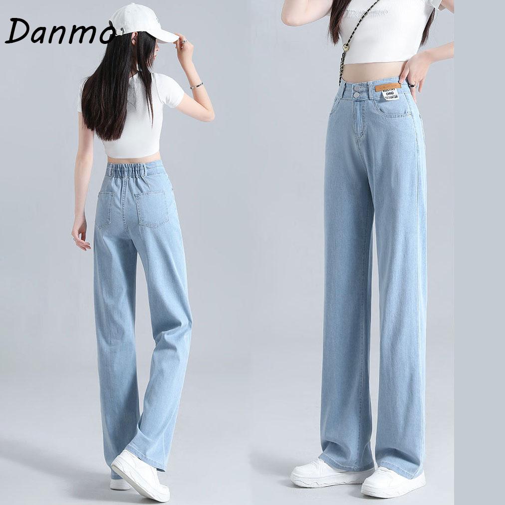 Danmo, летние мягкие женские джинсы из натуральной лиоцелловой ткани, тонкие мешковатые прямые джинсовые брюки, повседневные женские брюки с высокой талией