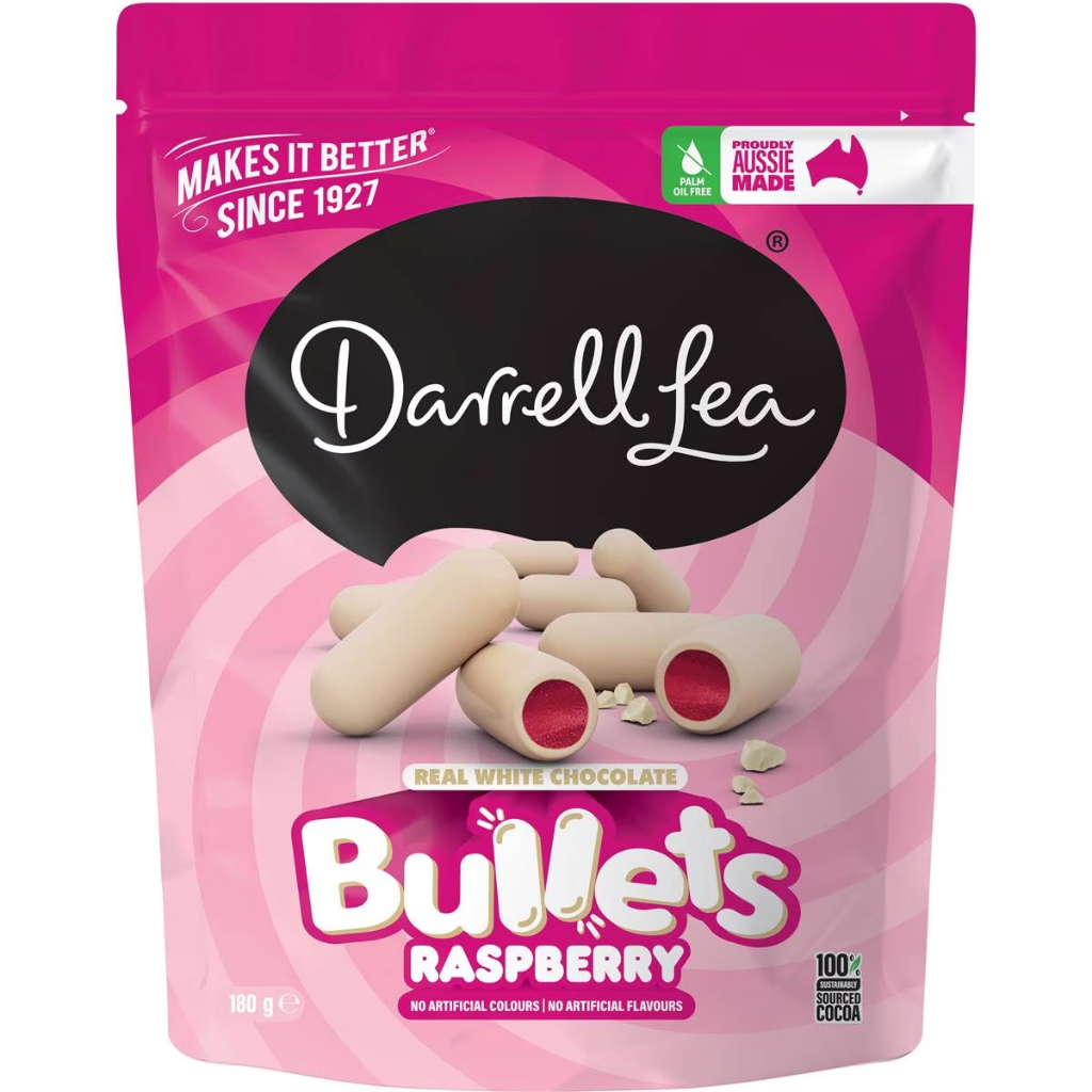 Darrell Lea Bullets White Chocolate Raspberry Australia