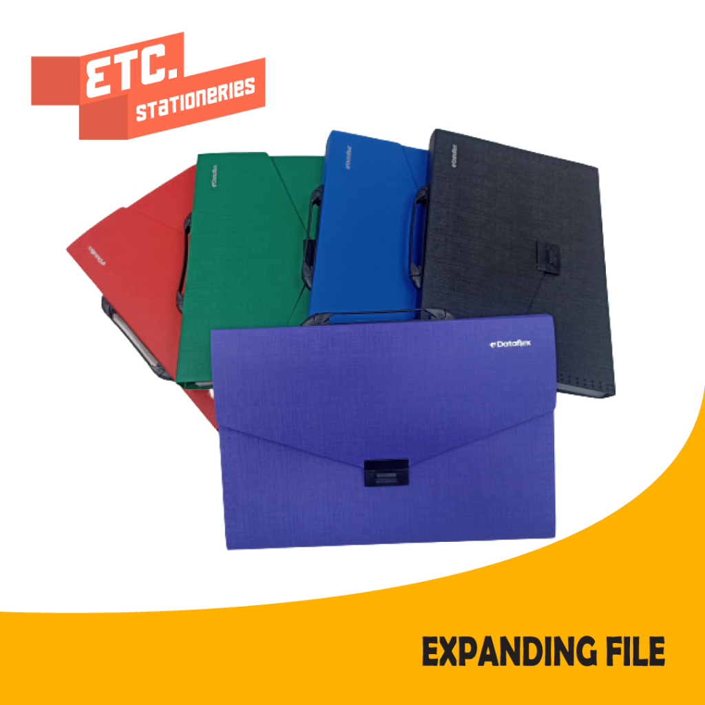 Dataflex Expanding File terbuat dari bahan plastik motif linen, tersedia dalam 5 varian warna merah, biru, hijau, hitam, dan violet. Cocok digunakan untuk surat surat penting, dokumen, arsip presentasi, dan tugas anak sekolah.