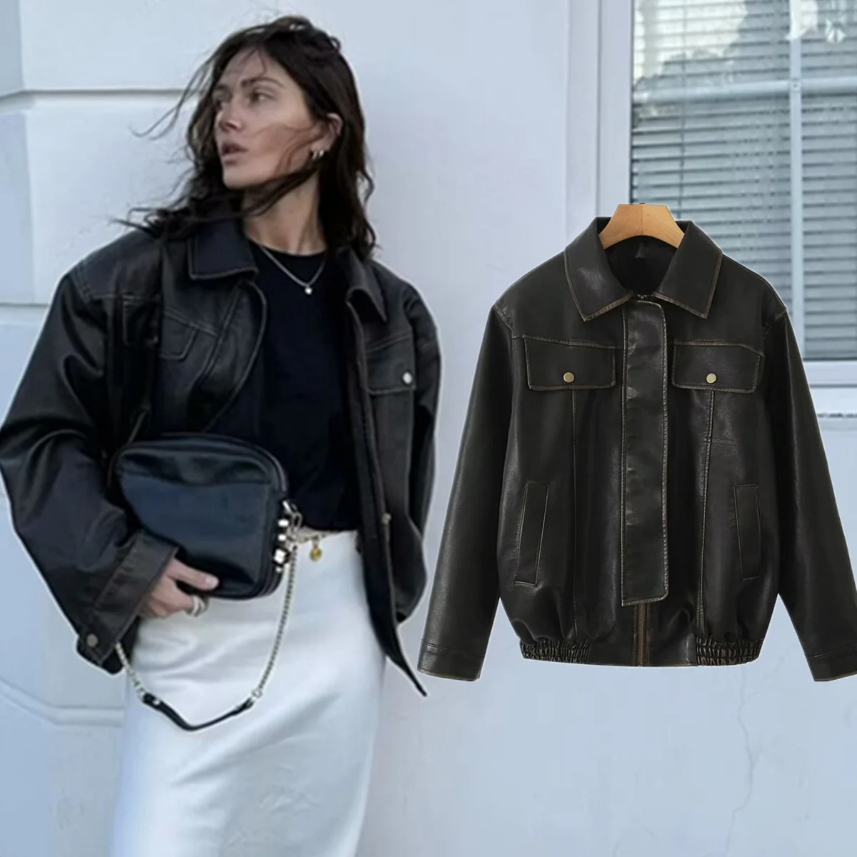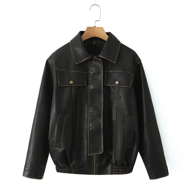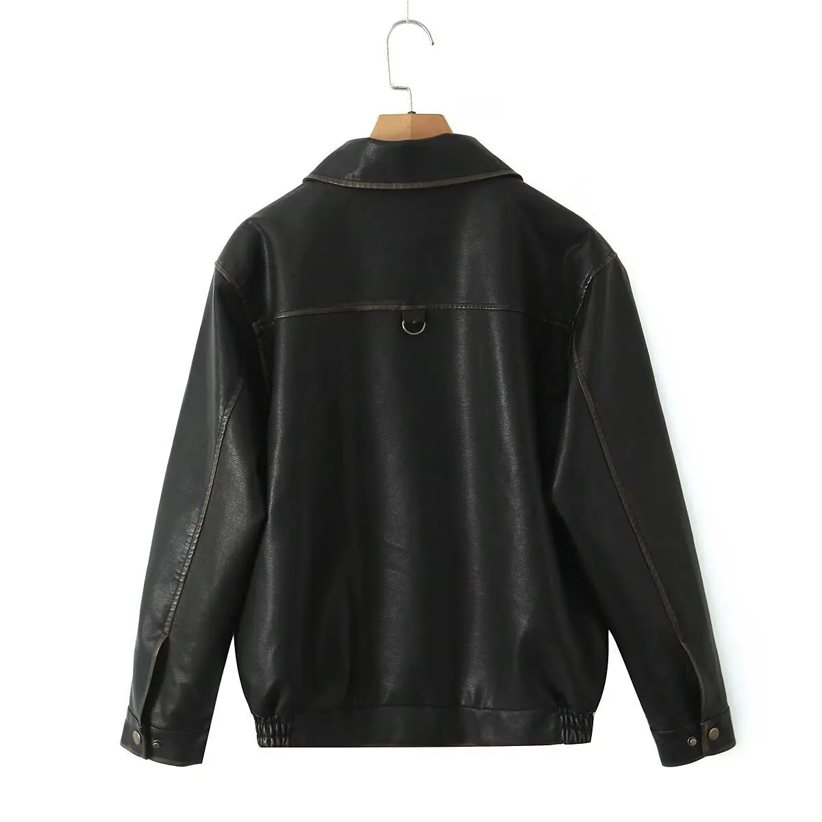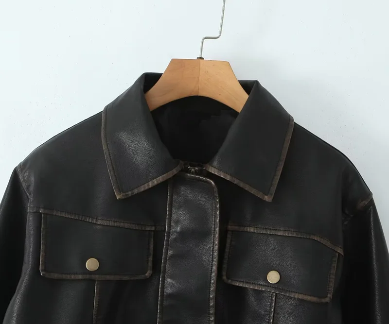 Dave&Di осенне-зимняя женская верхняя одежда, французская винтажная сверхпрочная стираная кожаная куртка, черная мотоциклетная кожаная куртка, пальто wom