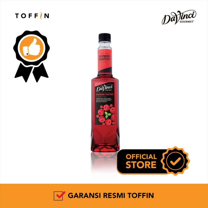 Nikmati keajaiban rasa Raspberry Rhapsody dari DaVinci Syrup! Sirup ini adalah campuran sempurna antara sensasi segar buah raspberry dengan sentuhan kelembutan yang memukau. Dibuat dengan teliti menggunakan buah raspberry berkualitas tinggi, DaVinci Syrup "Raspberry Rhapsody" menghadirkan kelezatan alami yang begitu memikat. Dengan setiap tetesnya, Anda akan merasakan kelembutan dan keceriaan rasa raspberry yang autentik. Sirup ini sangat cocok untuk menghadirkan sentuhan spesial pada minuman, baik itu kopi, teh, koktail, atau minuman ringan lainnya. Selain itu, "Raspberry Rhapsody" juga bisa digunakan untuk memperkaya berbagai hidangan penutup, yogurt, es krim, dan kreasi kuliner lainnya. Jadikan setiap momen Anda lebih berkesan dengan tambahan rasanya yang menggoda ini. DaVinci Syrup "Raspberry Rhapsody" adalah pilihan sempurna untuk memuaskan selera Anda akan rasa raspberry yang tak terlupakan. Segera nikmati keindahan rasa dalam setiap tetesnya! Komposisi : Sirup Sukrosa (Tebu), Jus Raspberry (Minimal 21%), Konsentrat Jus Buah, Asam Makanan (330, 296), Perisa, Pengawet (202), Pewarna (150a, 129). Masa Penyimpanan : 18 bulan dari tanggal produksi Berat Bersih : 750 ml Disimpan dalam keadaan tertutup, di tempat bersih, sejuk (