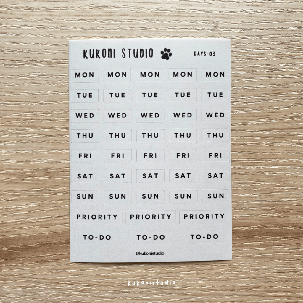 –Ukuran per stiker hari: 1,25 cm x 0,55 cm