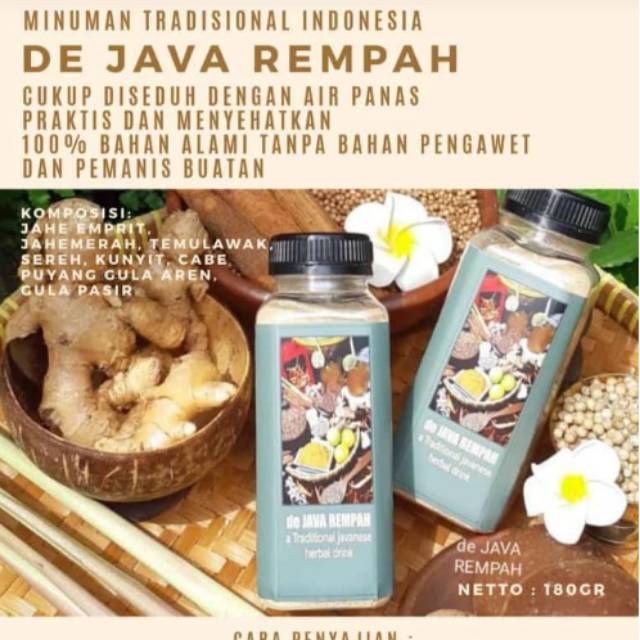 minuman kesehatan dengan komposisi jahe emprit,jahe merah,temulawak,sereh,kunyit,cabe puyang,gula aren, gula pasir