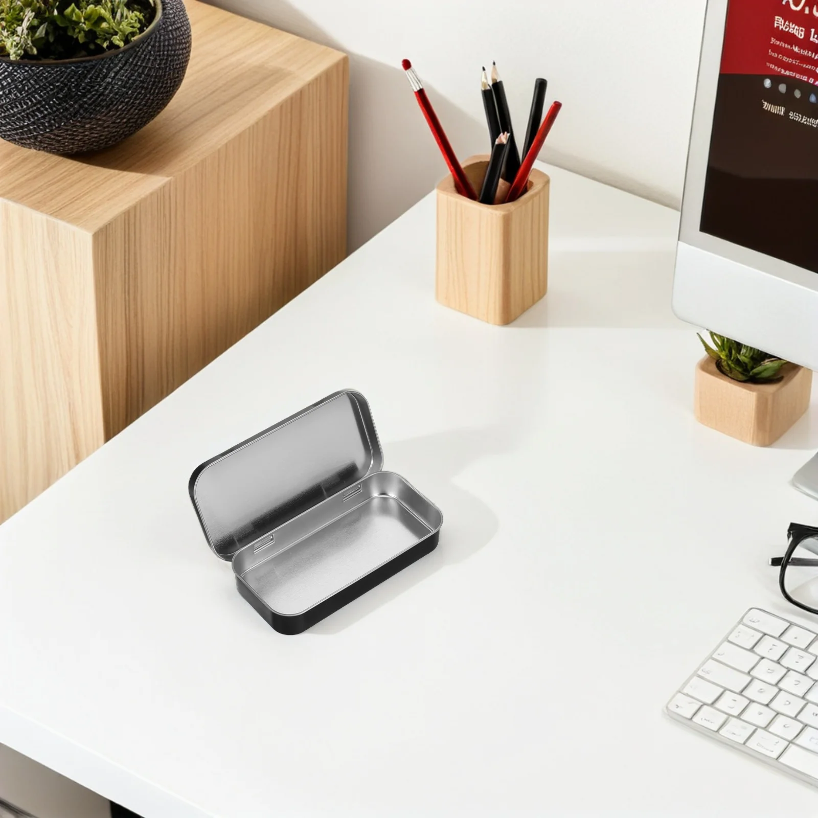 Decorative Metal Storage Box with Lid - Small Rectangular Tin Container for Crafts Collectibles Easy Clean Tin Box for Home