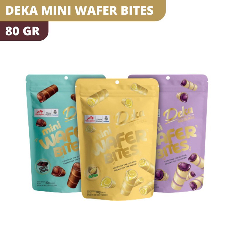 Deka Mini Wafer Bites 80g Wafer roll persembahan Deka yang crispy diluar dan creamy di dalam, karena terdapat krim rasa ube yang manis dan lezat di setiap gigitannya. Hadir dengan size bites yang sangat praktis untuk langsung dimakan kapanpun dan dimanapun. Cocok untuk dijadikan cemilan favorite saat kumpul dengan teman atau keluarga.