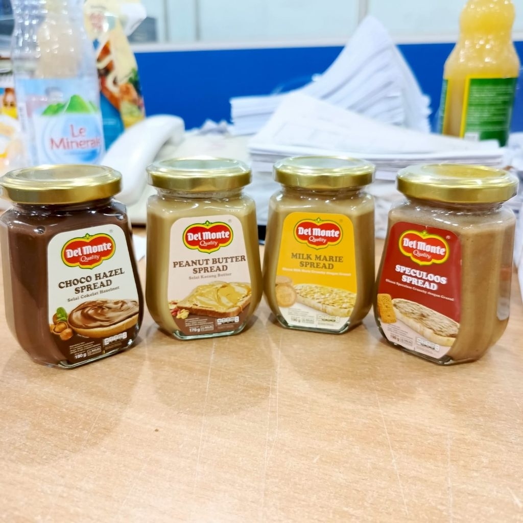 Nikmati kelezatan Del Monte Selai Premium 190gr dengan berbagai varian rasa istimewa: Choco Hazel, Peanut Butter, Milk Marie, dan Speculas.
