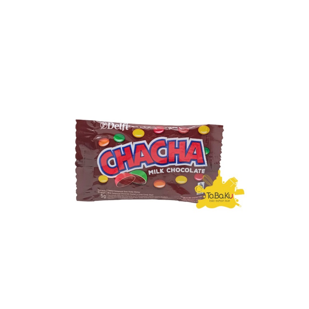 Delfi Cha-Cha merupakan permen yang dilapisi permen dengan berbagai warna dan diisi kacang.