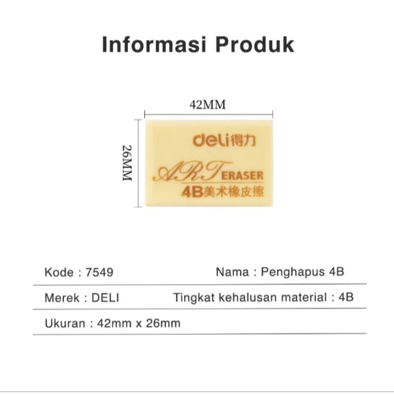 Deli eraser penghapus 4B 7544 , tidak mudah patah
