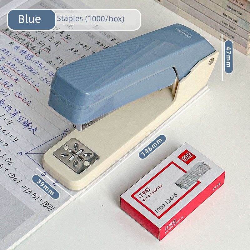 Deli Rotatable Stapler Student Mini Small Sized Stapler Office Multi-Functional Book Booking Bookbinding Machine Blue + staples (1000/box)