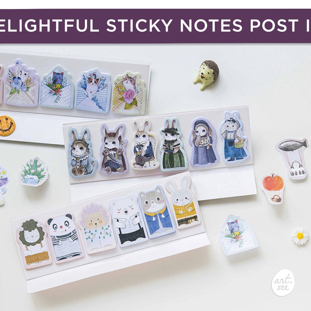 catatan tempel (post-its) yang memiliki beragam warna dan ilustrasi yang menggemaskan, dari mulai kucing, kelinci, bunga, hinga balon. Tempel dan tulisi dimanapun yang kamu mau!