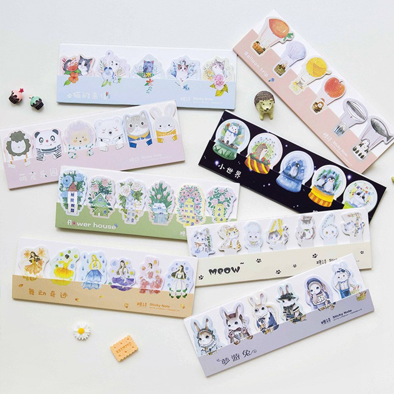 Catatan tempel (post-its) yang memiliki beragam warna dan ilustrasi yang menggemaskan, dari mulai kucing, kelinci, bunga, hinga balon. Tempel dan tulisi dimanapun yang kamu mau!