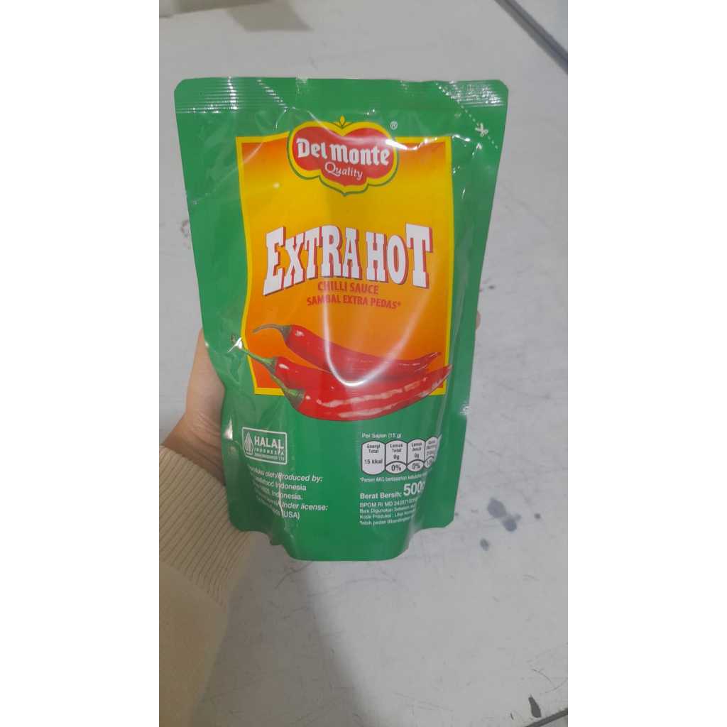 Delmonte Extra Hot 500gr adalah produk saus sambal atau mungkin produk lain dengan label "Extra Hot" dari brand Delmonte, dikemas dalam berat 500 gram. Dengan label "Extra Hot", memiliki tingkat kepedasan yang tinggi. Delmonte adalah brand yang dikenal untuk produk makanan dan saus. Produk Delmonte Extra Hot 500gr dapat digunakan untuk menambah rasa pedas pada berbagai hidangan. Dengan kemasan 500gr, dapat mencukupi kebutuhan untuk beberapa kali penggunaan.