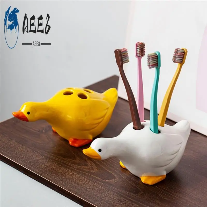 AEE8-держатель для зубных щеток, утка, 4 отверстия, дренажный держатель для зубных щеток для хранения в ванной комнате