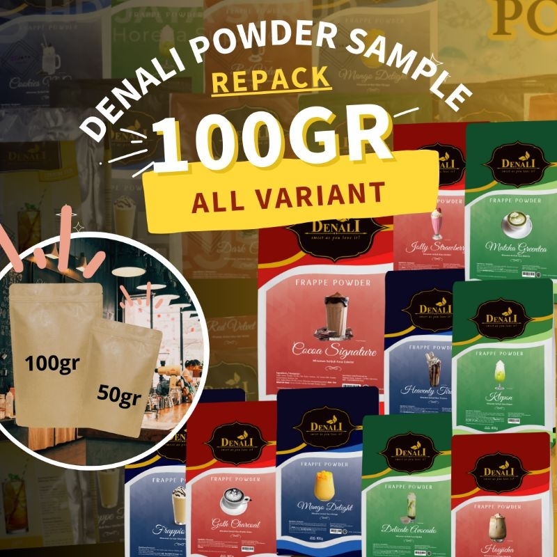 Denali sample Repack kemasan 100gr dan 50gr ready stok selama masih ada di etalase toko,produk original 100% sample di ambil dari kemasan yang 800gr dan 1000gr,untuk exp kami jamin masih lama. (uang kembali apabila bukan original)
