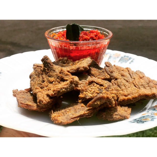 Dendeng kering khas padang yang disajikan dengan bumbu cita rasa minang asli