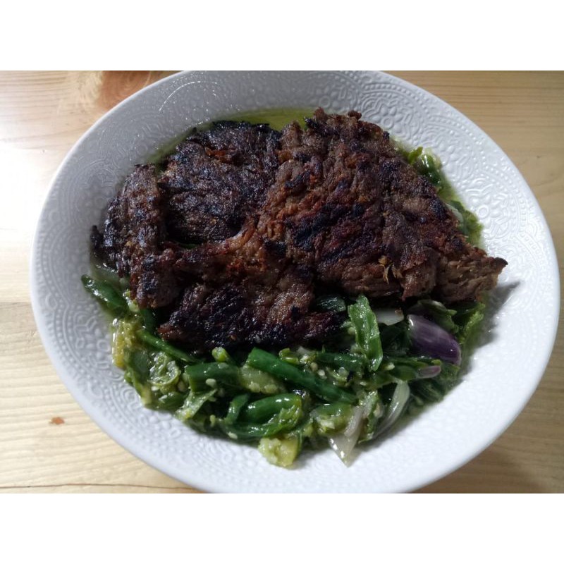 Dendeng Bakar dari daging sapi premium dengan Sambalado Hijau