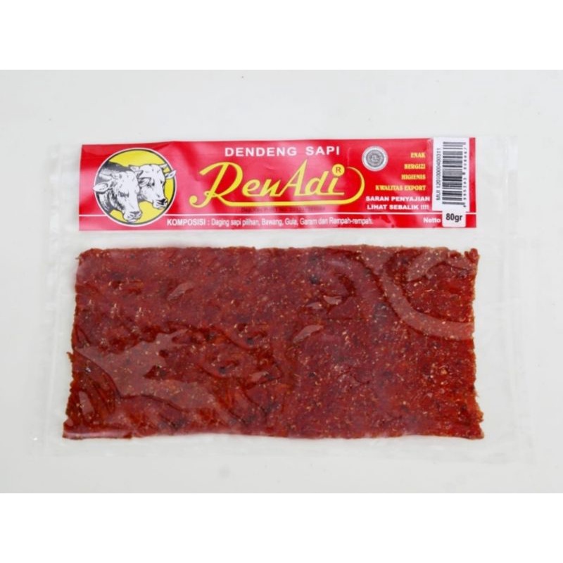 Dendeng Renadi terbuat dari daging berkualitas, bahan yang premium, rempah pilihan sehingga membuat cita rasa yang nagih dan tak terlupakan. Dendeng juga di proses menggunakan alat mesin berteknologi canggih, sehingga dijamin higienis dan berkualitas. Dendeng Renadi sudah bersertifikat MUI dan terdaftar di BPOM juga yaa :)