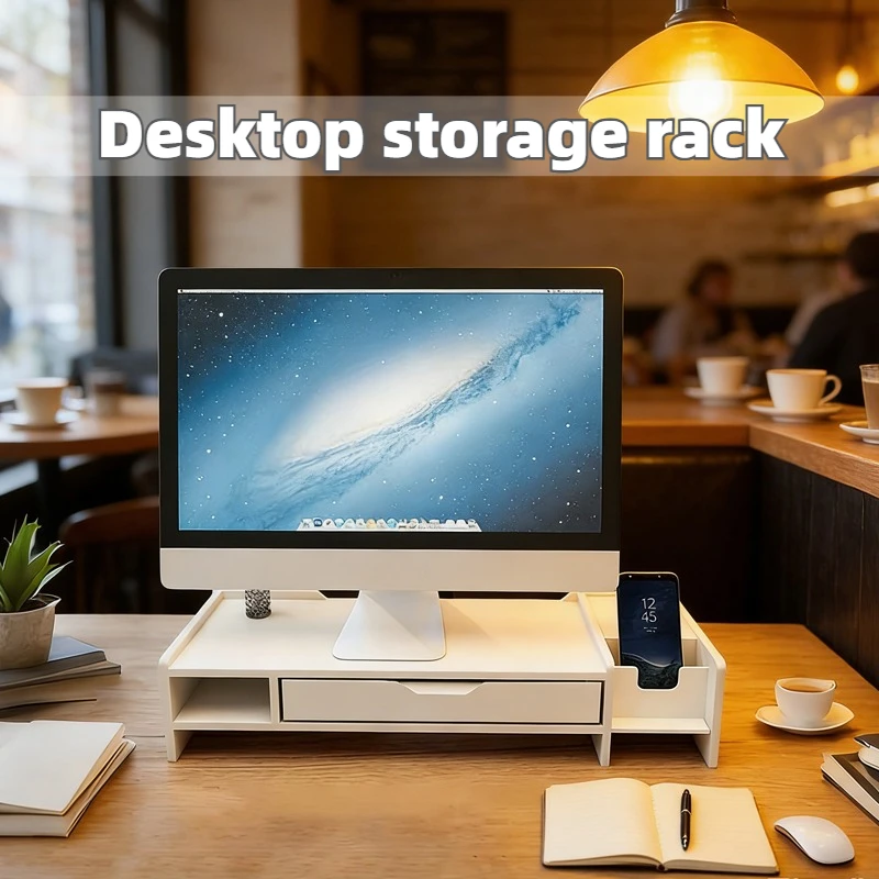 Desktop Storage Rack Monitor Stand Riser Desk Organizer Shelf with Multi Tier Storage for PC Laptop School Office Easy Assemble