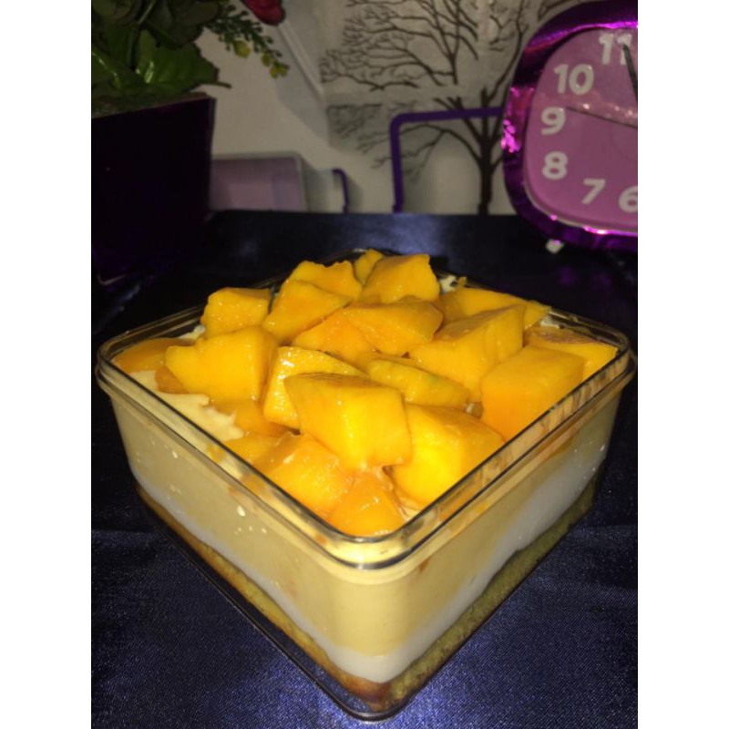 Dessert box ukuran 10x10 dibuat dengan butter cake yang lembut dipadu dengan cream yang super lembut ditambah topping buah mangga yang fresh. Khusus dessert box pengiriman hanya bisa menggunakan someday by gojek atau grab. Untuk order by shoppee kita aktifkan pre-order karena menjaga produk dibuat fresh setelah diorder, pengiriman dilakukan secepatnya.