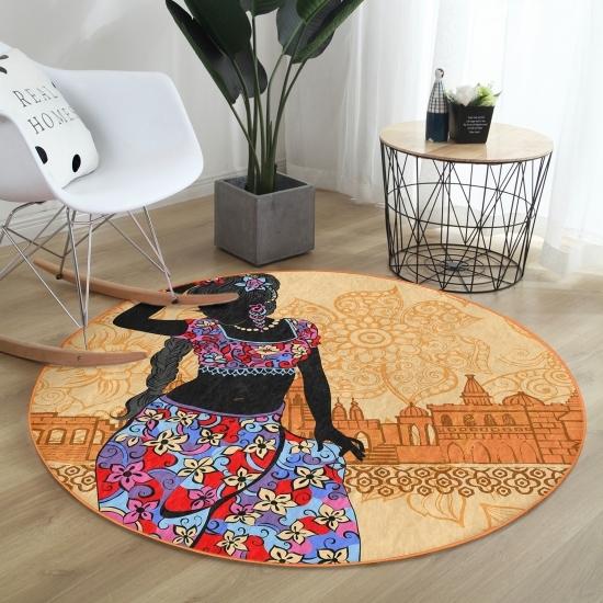 Deymend этнический узор напольный черный женский узор цветной открытый моющийся нескользящий круглый ковер
