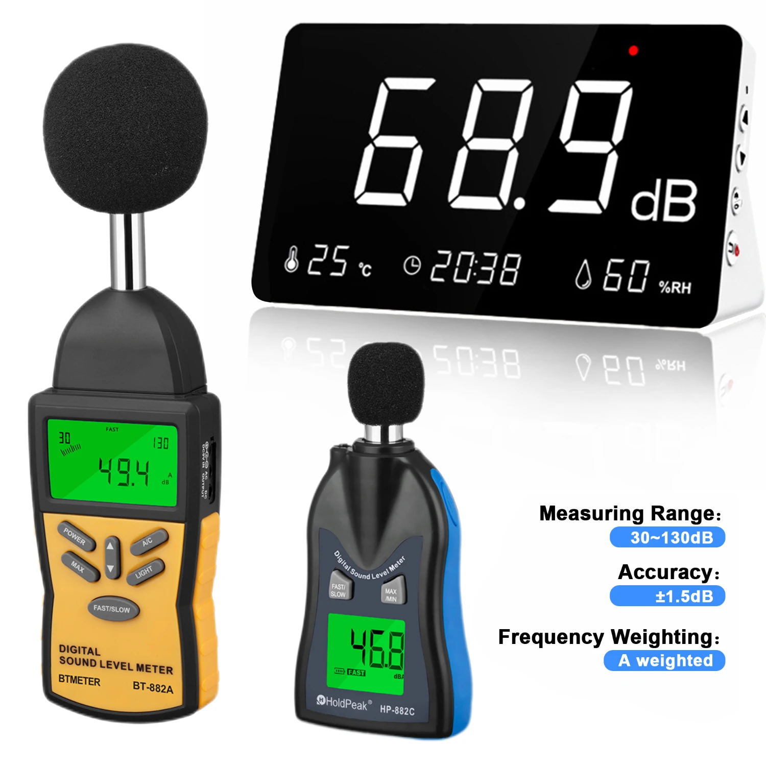 Dezibel Meter SW525S, 30-130dB Sound Level Meter with Alarm & Data Recording, USB Data Output, A-Rating, Desktop Noise Meter