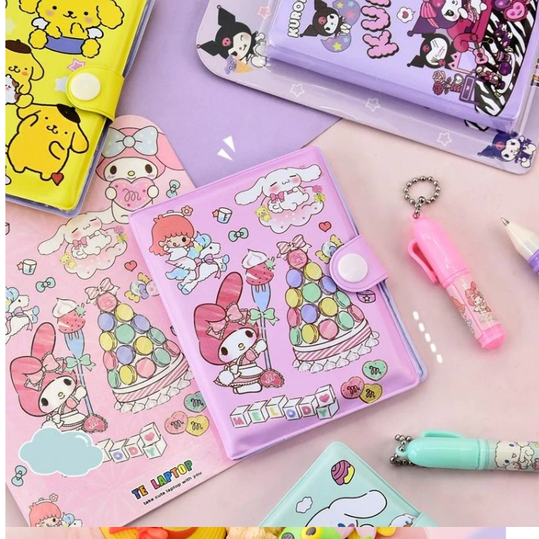 Diary Mini Motif Lotso, Kuromi, Rabbit plus Pen / Notebook Mini Kancing - ATK
