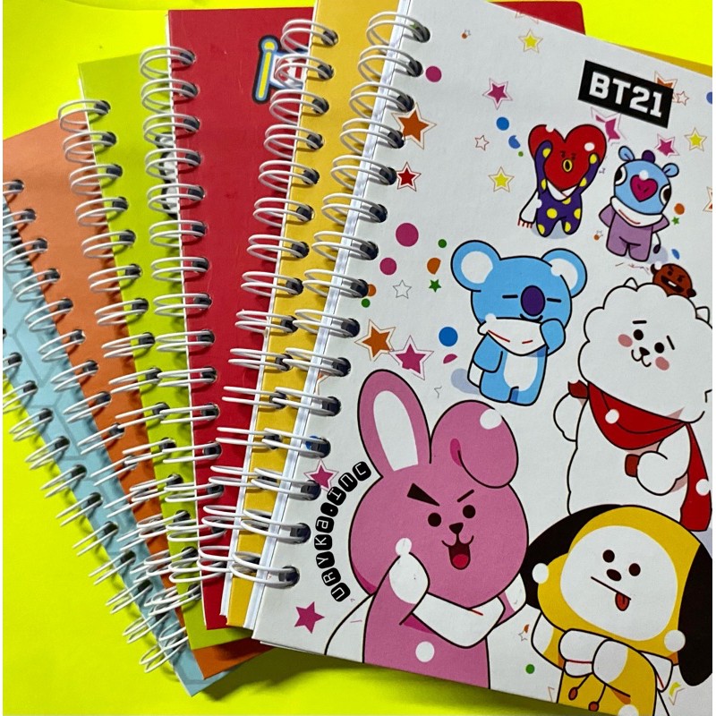 Diary Spiral BT21 dengan berbagai macam motif gambar lucu. Ukuran A5.