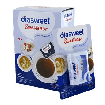 Diasweet Sweetener Box yang mendukung Life Balancer, Individu yang sedang Diet, dan Penderita Diabetes.