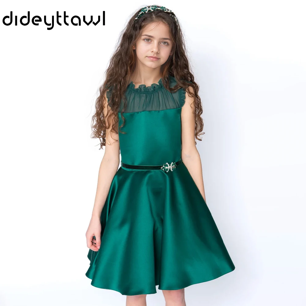 Dideyttawl индивидуальное прозрачное сетчатое атласное платье без рукавов с рюшами и вырезом для девочек, бархатный пояс, юбка трапециевидной формы со стразами