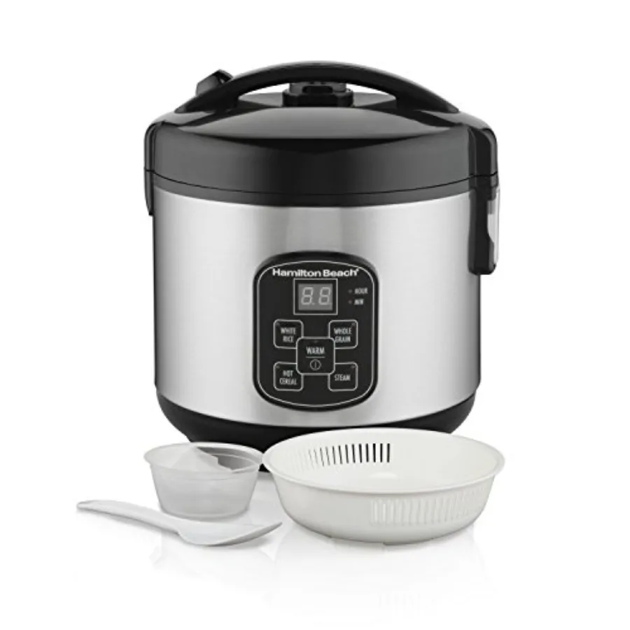 Digital Programmable Rice Cooker Food Steamer 8 Cups Cooked 4 Uncooked With Steam Rinse Basket Stainless Steel (
