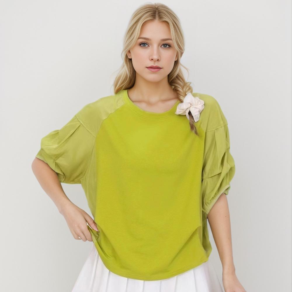 Dimanaf 2024 Женская футболка Женская однотонная эластичная хлопковая свободная футболка с коротким рукавом и круглым вырезом Желтый Зеленый