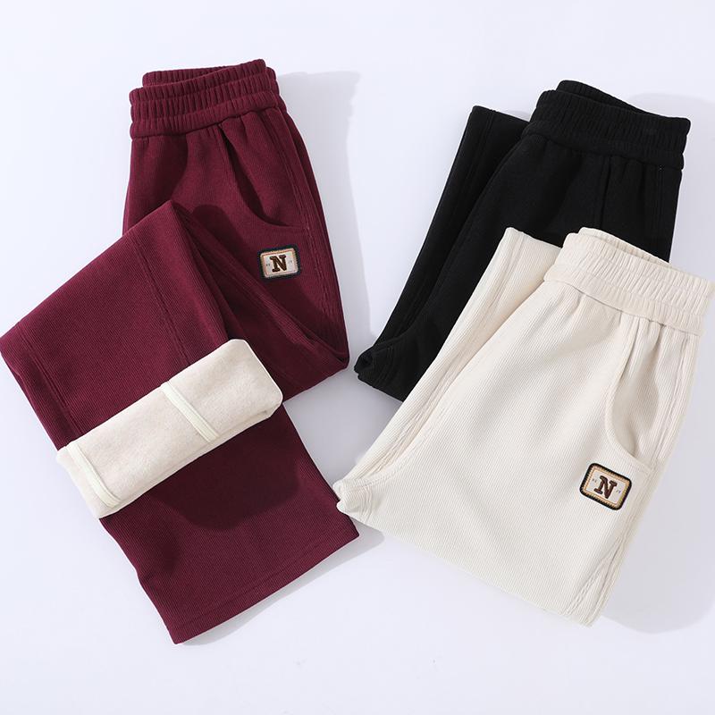 Dimanaf 2024 Осень Длинные брюки Зимние спортивные брюки Хлопок Женские шаровары Эластичный однотонный пояс Свободные брюки Новые S чёрный