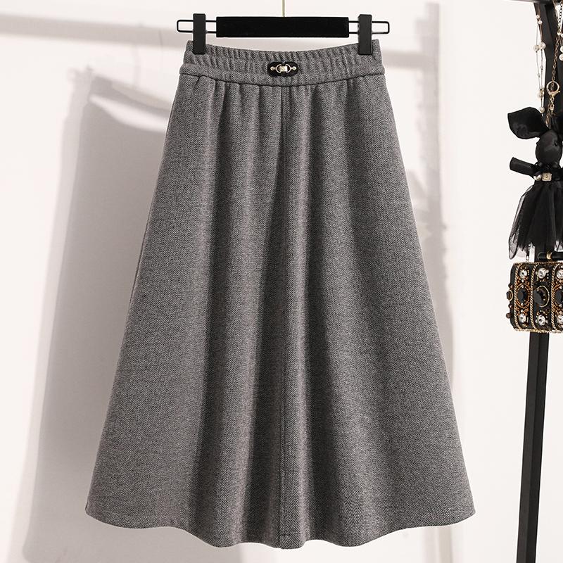 Dimanaf 2025 Весна Женские Новые Юбки Высокая Талия Винтаж Свободные Эластичные Плиссированные Элегантные Длинные Юбки Плюс Размер Твердый 4XL серый