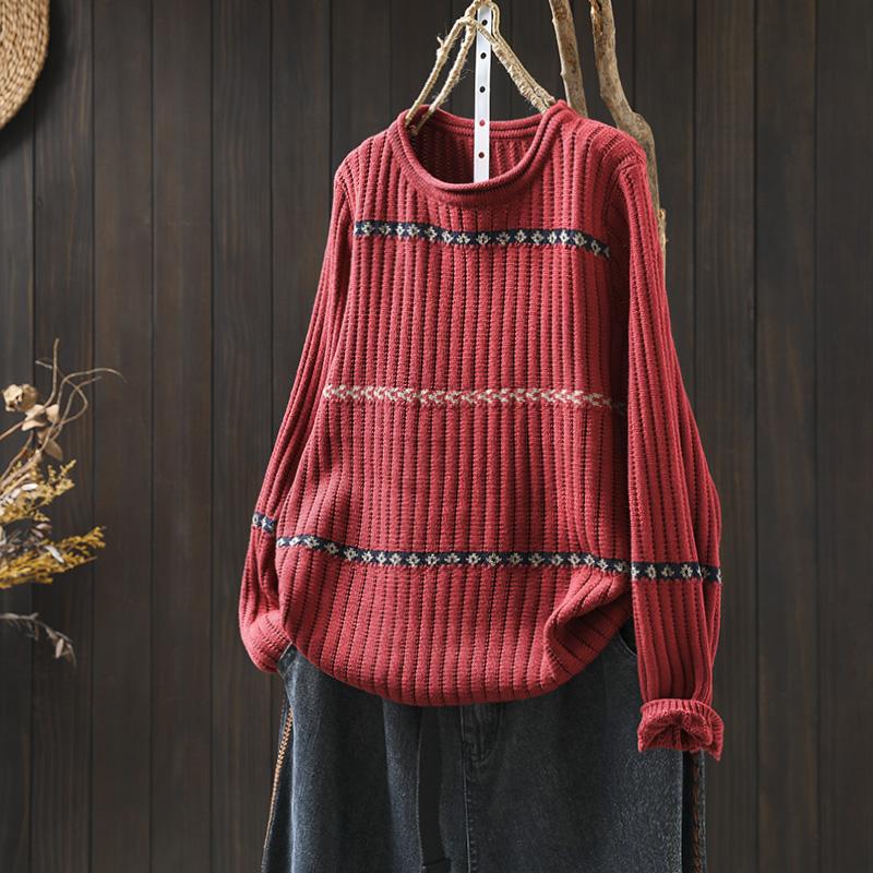 Dimanaf 2025 Весна Зима Женские Свитера Пуловеры Топы Полосатый Вязаный Винтажный Свитер Длинный Рукав average size