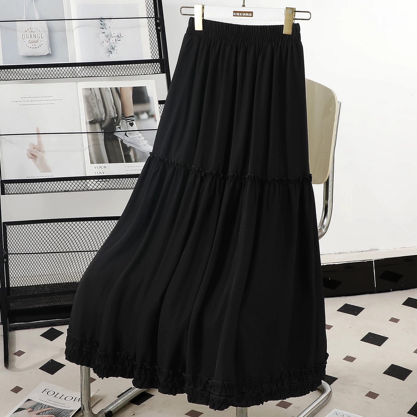 Dimanaf 2025 Лето Женские Новые Юбки Кружево Однотонные Эластичная Талия Элегантные Юбки One Size чёрный