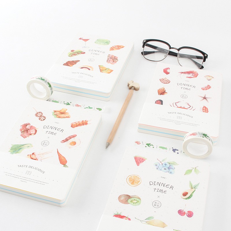 Seri terbaru dari Dinner Time yaitu Buku tulis dengan 3 jenis kertas yaitu kotak-kotak, bergaris dan polos dengan gambar yang sama dengan seri sebelumnya. Dijilid dengan kombinasi jahitan benang dan lem, buku mudah dibuka 180 derajat dan kertas di dalamnya tidak mudah lepas. Bentuknya praktis dan kokoh berkat sampul karton tebalnya, tidak mudah lecek dan atau terlipat secara tidak sengaja.