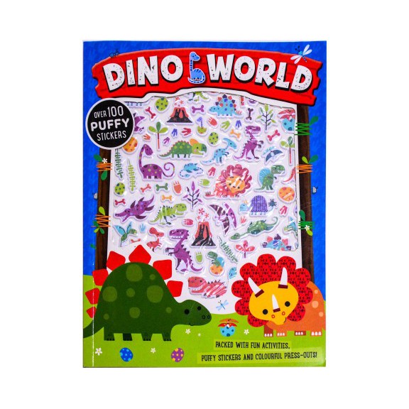 Welcome to Dino World! The perfect activity book for young dinosaur enthusiasts. This dinosaur-themed activity book is packed with things to do! It includes 32-pages of colouring and doodling activities, 20 pages of dinosaur card press-outs, and a sheet of fabulous puffy stickers!