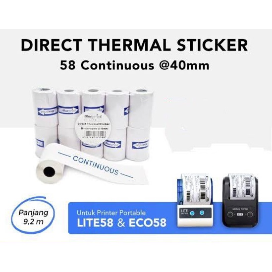 Direct Thermal Sticker Label BLUEPRINT 58 x 9.2 Meter / 58 x 5 m Continuous - 1 Roll
