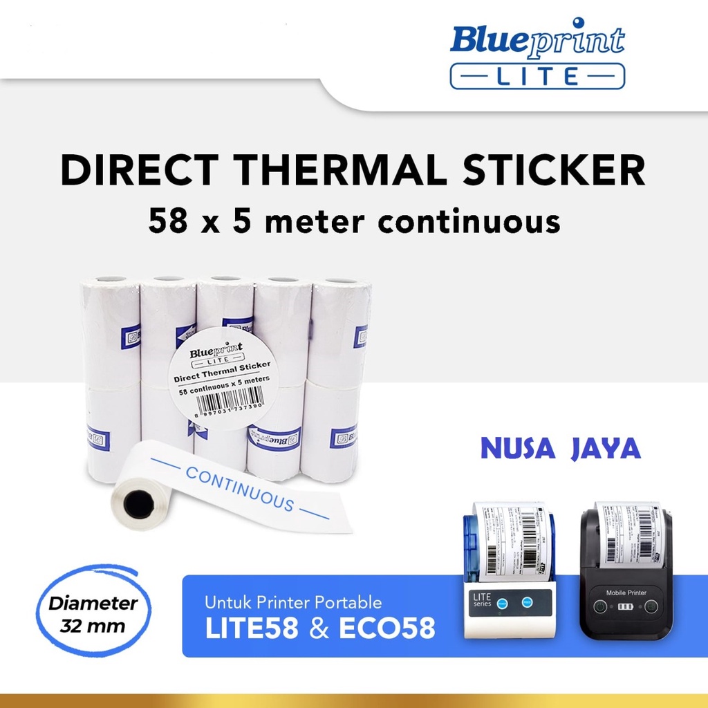 Direct Thermal Sticker Label BLUEPRINT 58x5 Meter Continuous Label Sticker Thermal Lite