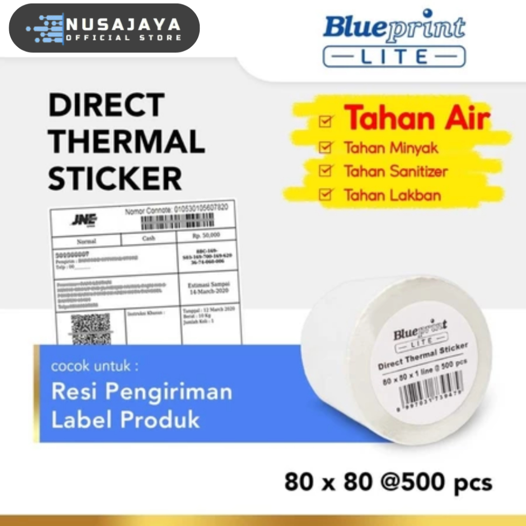 Direct Thermal Sticker Label BLUEPRINT Lite 80x80 mm 500Pcs - 1 Roll