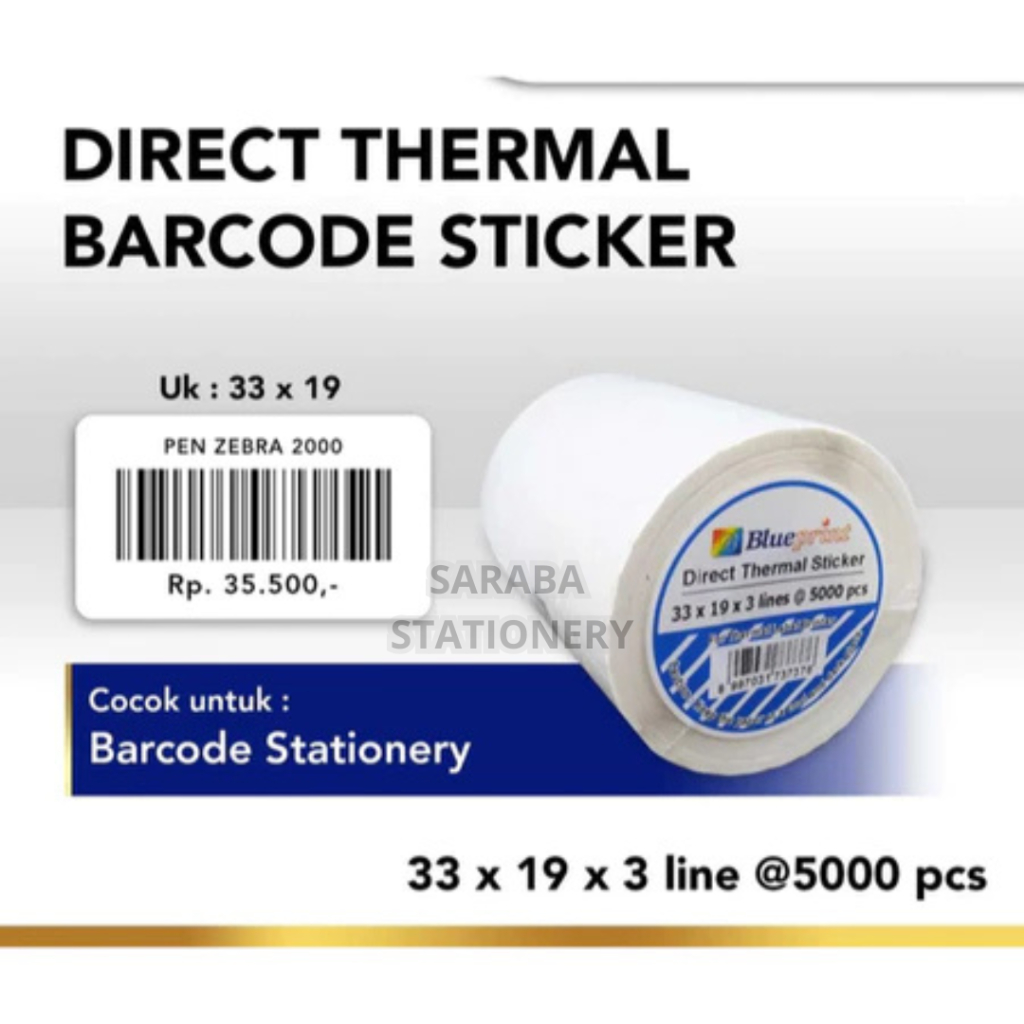 Direct Thermal Sticker Label Barcode BLUEPRINT 33x19 mm 3 Line 5000pcs