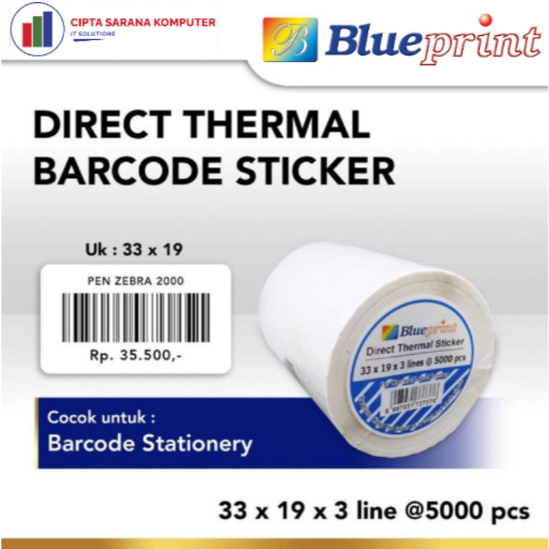 Stiker Barcode Label / Sticker Barcode Thermal BLUEPRINT Ukuran 33mm X 19mm