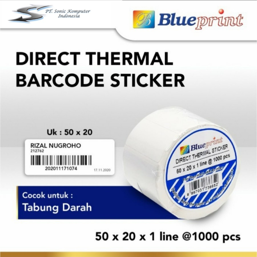 Direct Thermal Sticker Label Barcode Blueprint 50x20x1 Line isi 1000