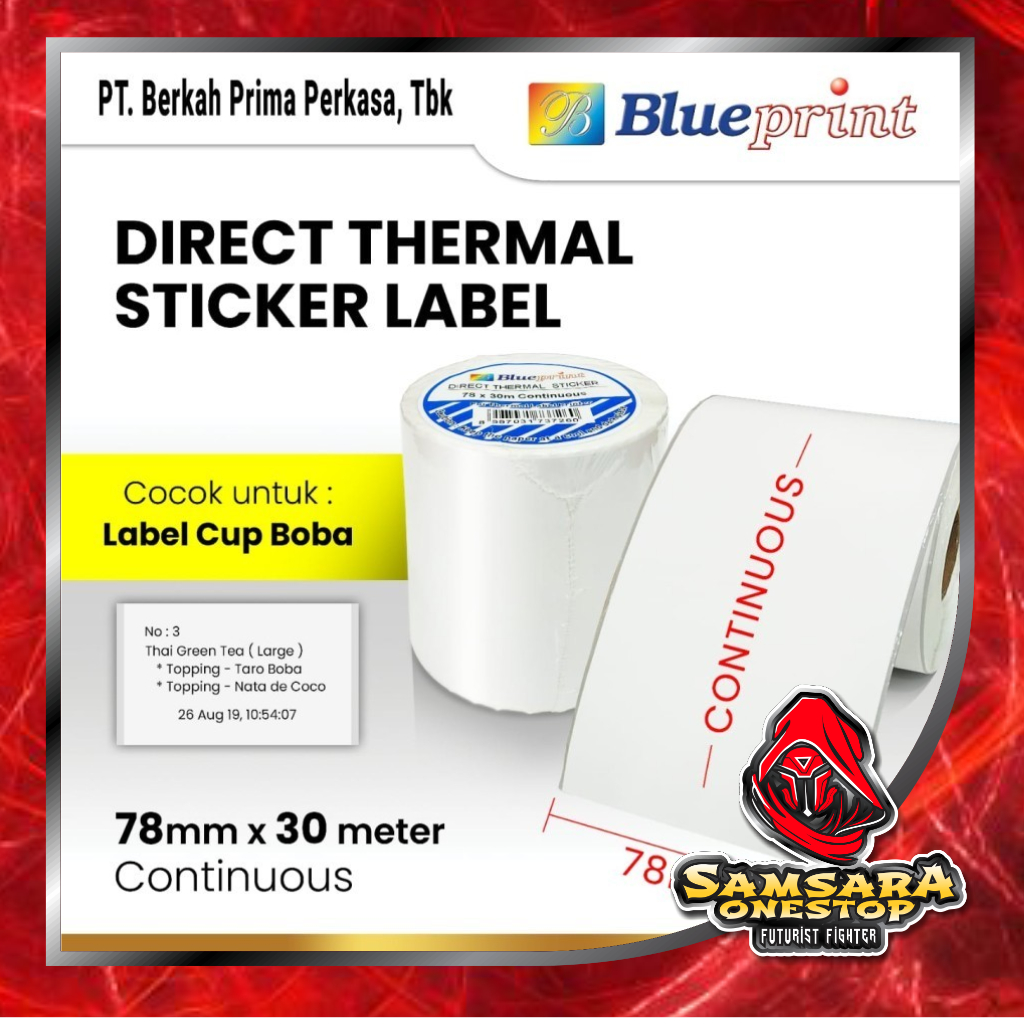 Direct Thermal Sticker Label Continuous BLUEPRINT 78x30 Meter 78 x 30
