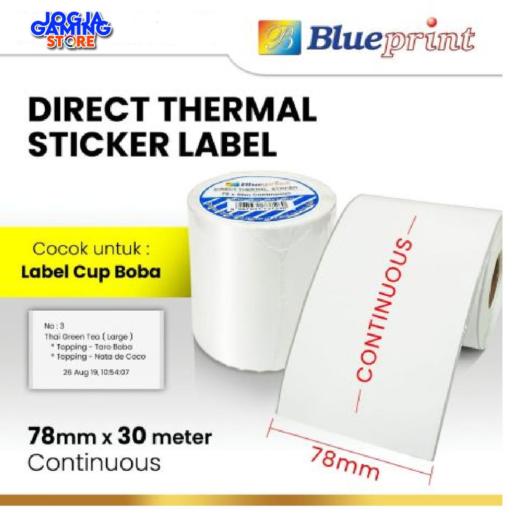Direct Thermal Sticker Label Continuous BLUEPRINT 78x30 Meter 78x30M
