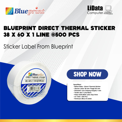 Direct Thermal Sticker / Label Stiker BLUEPRINT 38x60x1 Line Isi 500