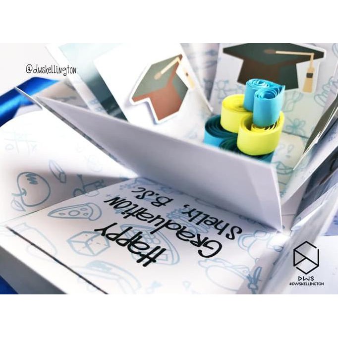 Kotak ini dapat dibuka dan mekar (pop up) layaknya bunga dengan sebuah Cake Quilling Paper 3 tingkat di tengah, dan dapat dilipat kembali menjadi kotak hadiah.